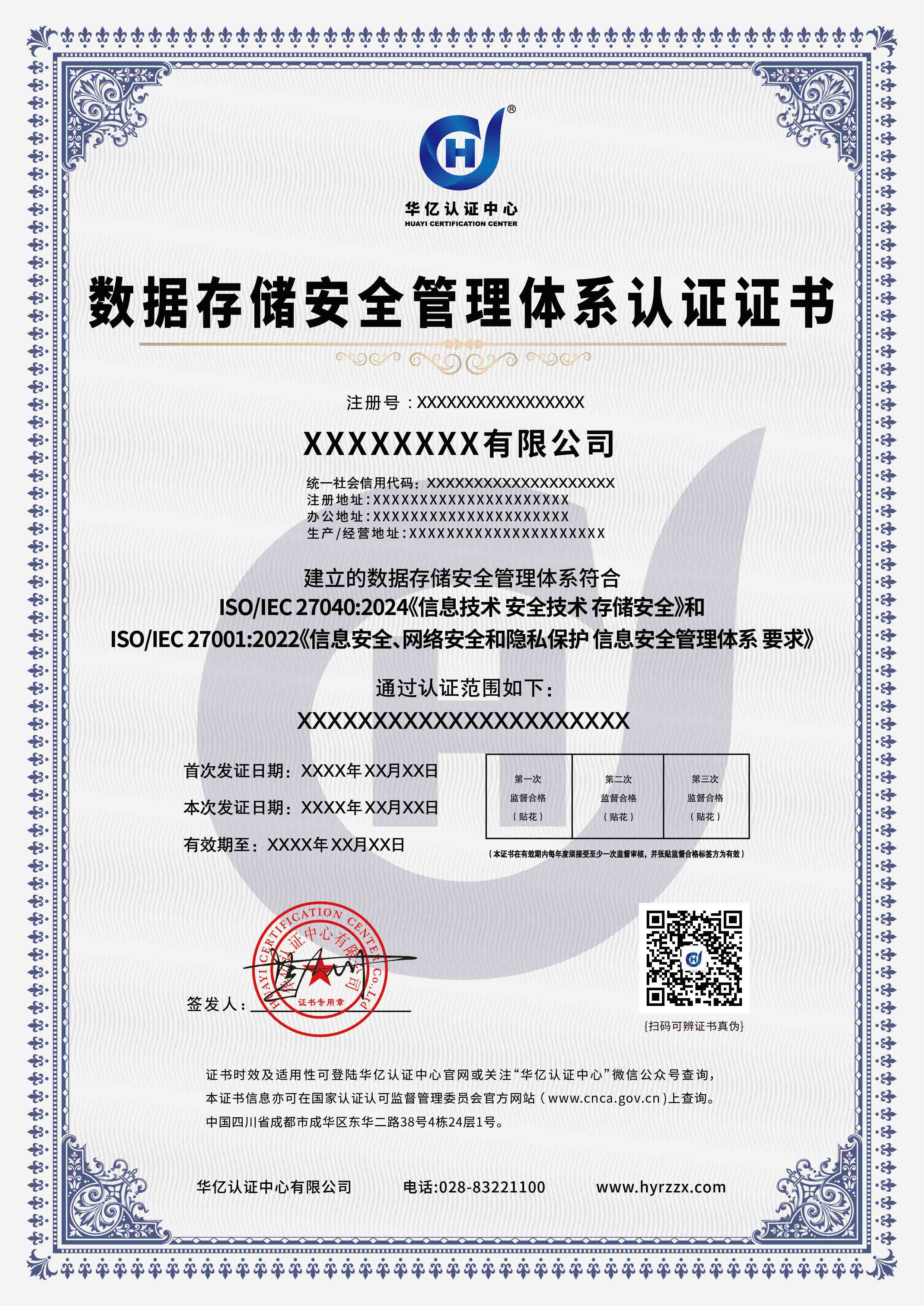 数据存储安全管理体系认证证书